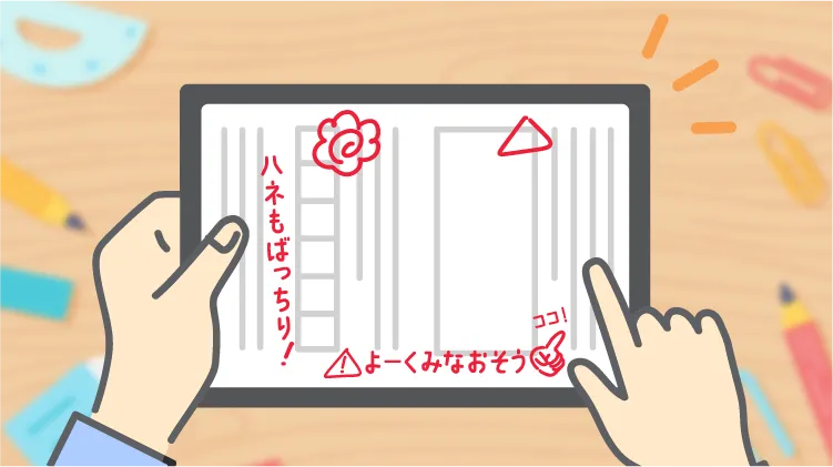 そんな心配はスマイルゼミには無用です!スマイルゼミの専用タブレットとタッチペンは、まるで紙に鉛筆で書いているような、自然で滑らかな書き心地。とめ・はね・はらいなどの細かい部分までしっかり丁寧に書けるので、漢字練習や計算の筆算も、紙の教材と同じように効果的に学習できます。
